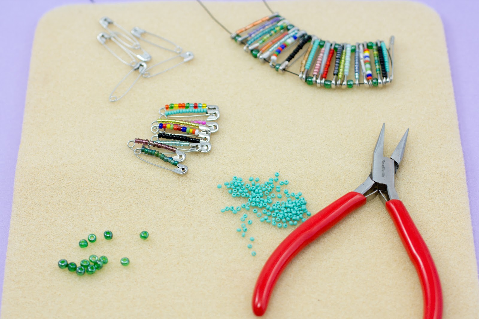 *Spacer Beads (These will be used between your safety pins so they’ll need to be bigger than seed beads)