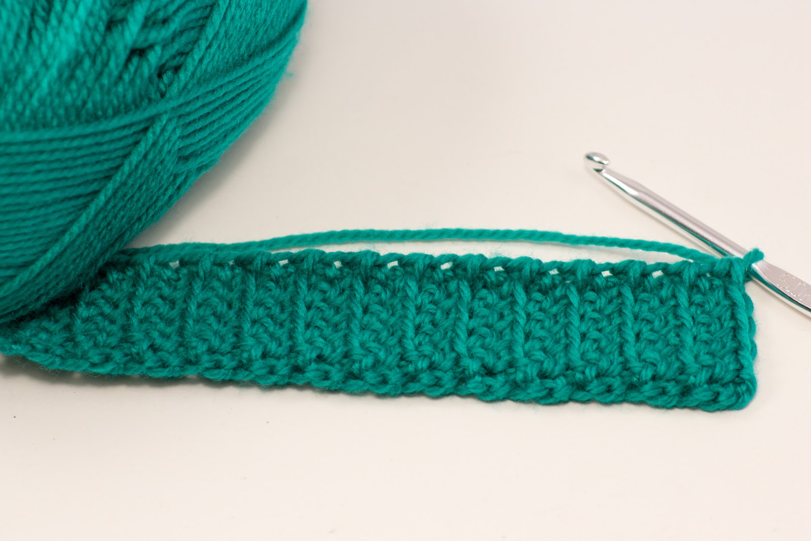 stitch you did. When crocheting into the stitches, go through the front loop only, this will create a ribbed band.