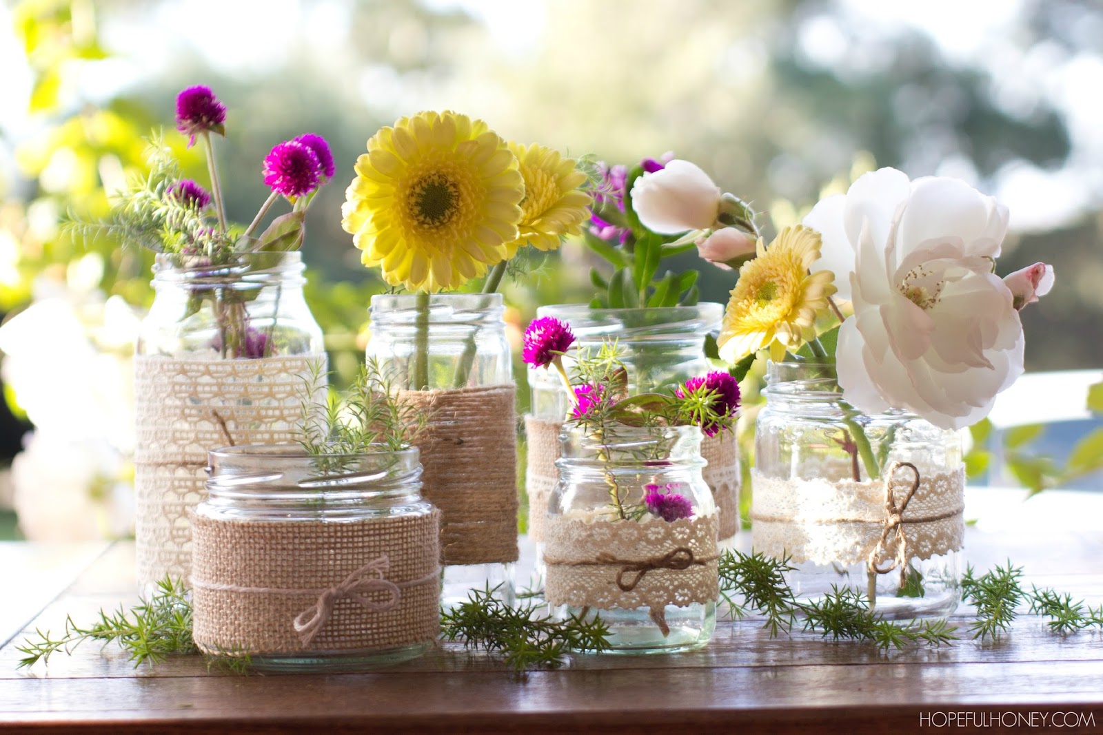 DIY Whimsical Lace & Twine Wrapped Jars