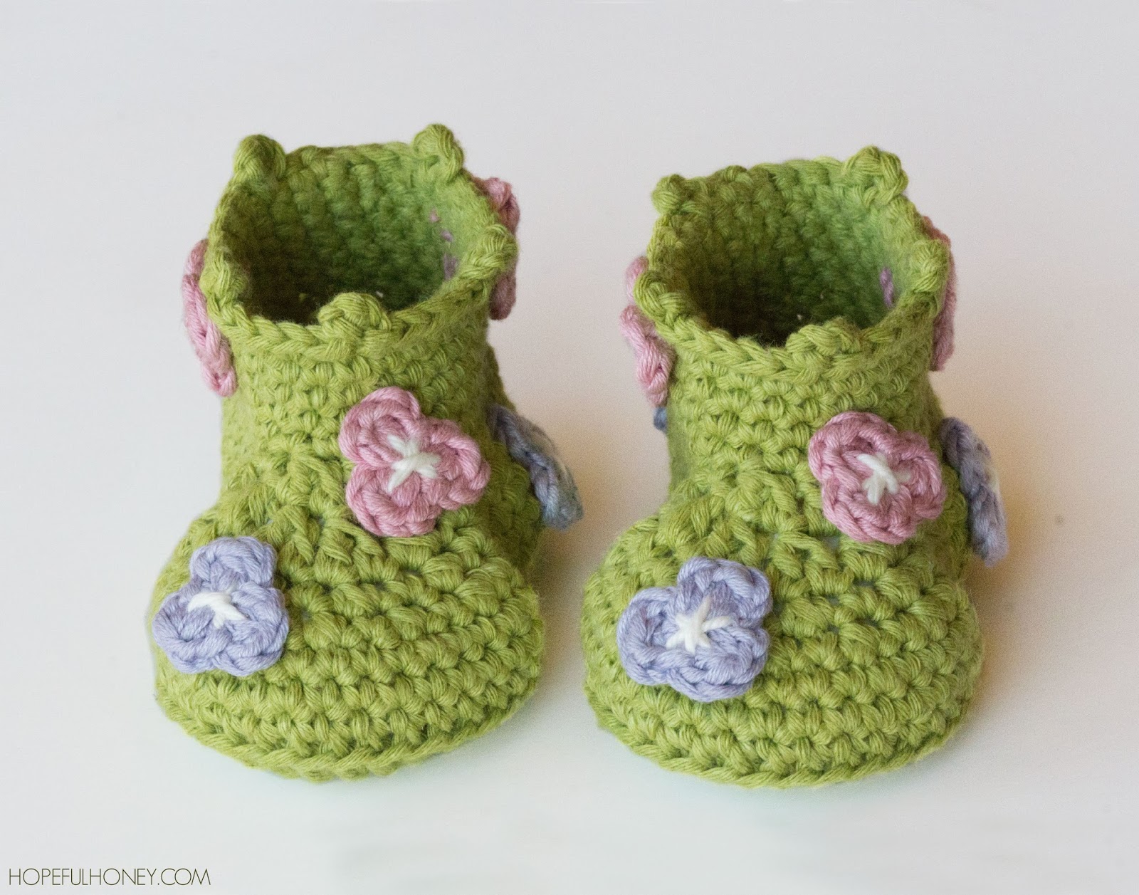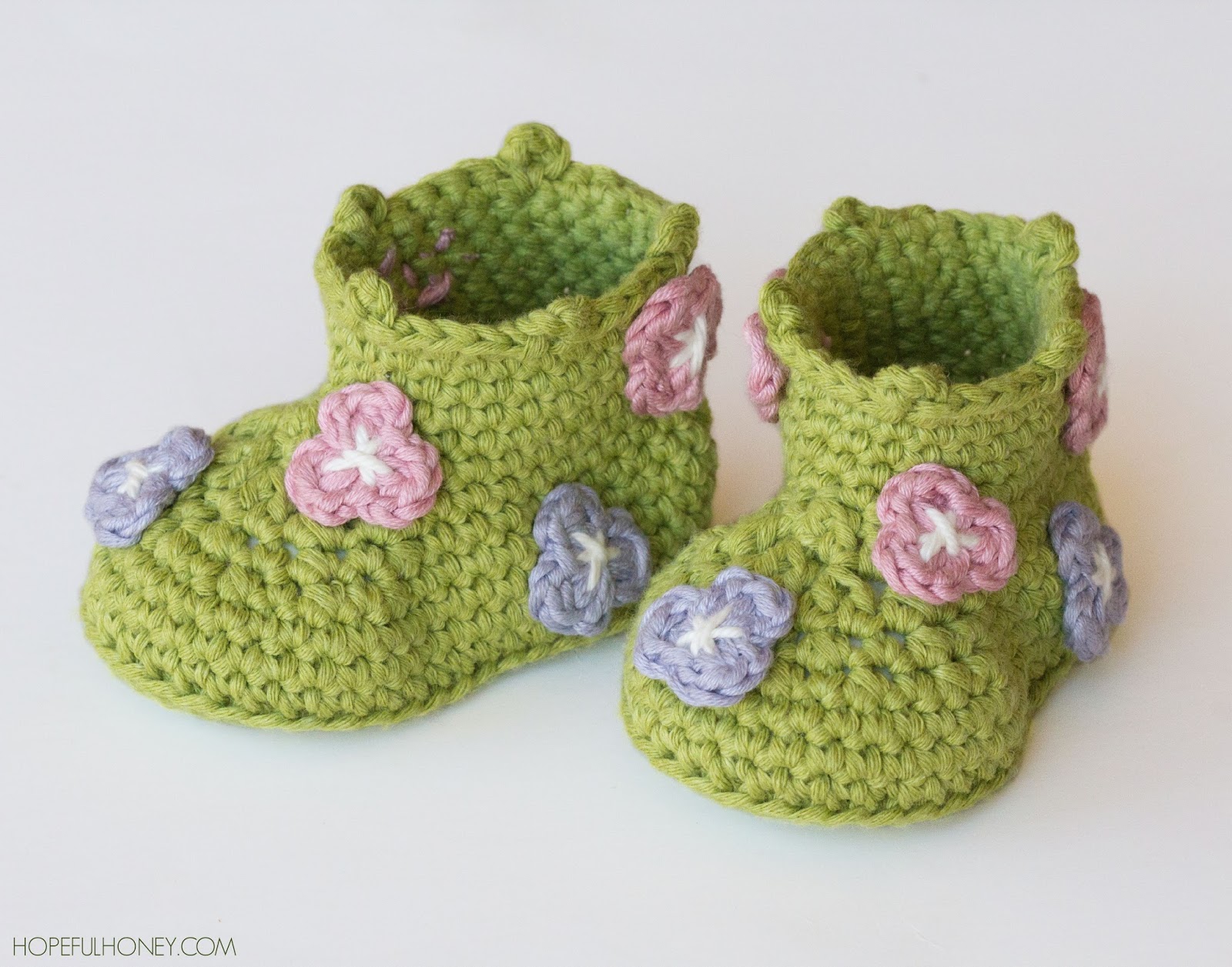 These cute little floral booties were inspired by that wonderful feeling of walking through a field of fresh and vibrant flowers while barefoot.