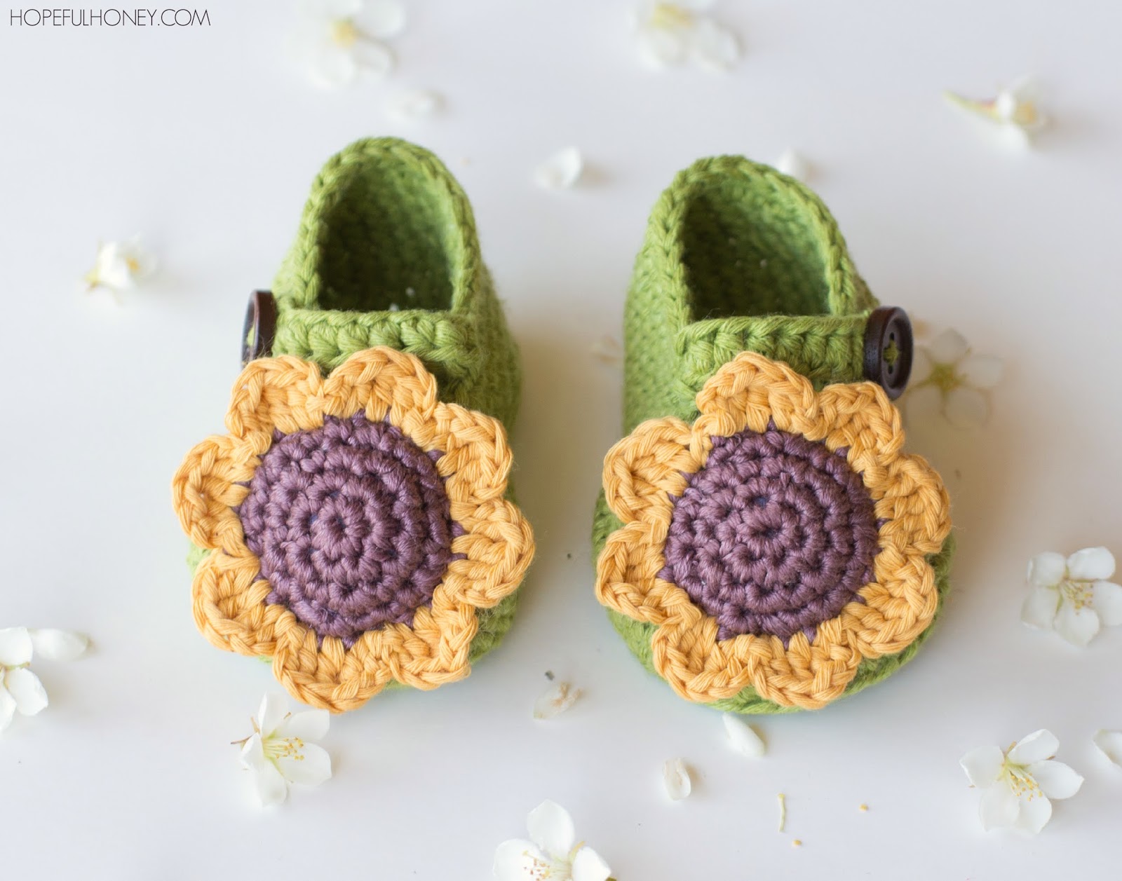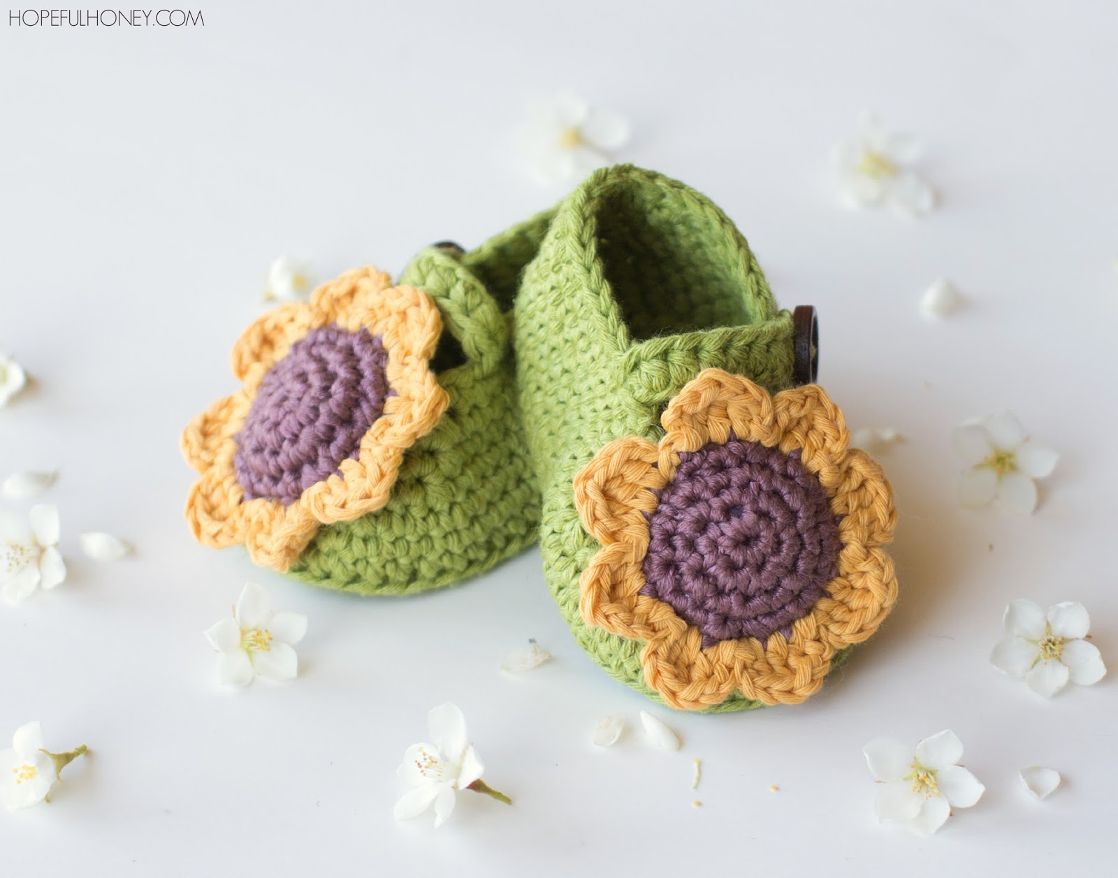 I love these. The sunflowers look so great. I love crocheting baby items, especially booties.