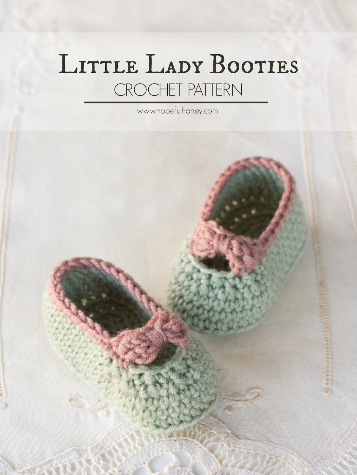 Being inspired by all the little ladies in our lives, I decided to design these adorable booties you see above… and I love how I was able to incorporate a bit of vintage charm into them as well!