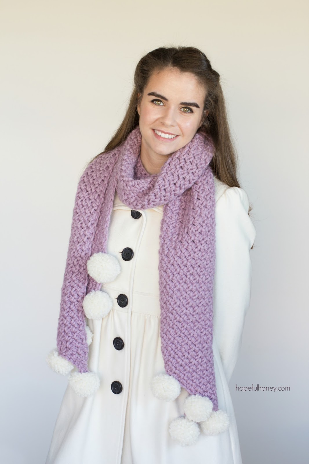 The last scarf I crocheted was a Harry Potter scarf for my grandsons Halloween costume. Love your pom pom scarf.