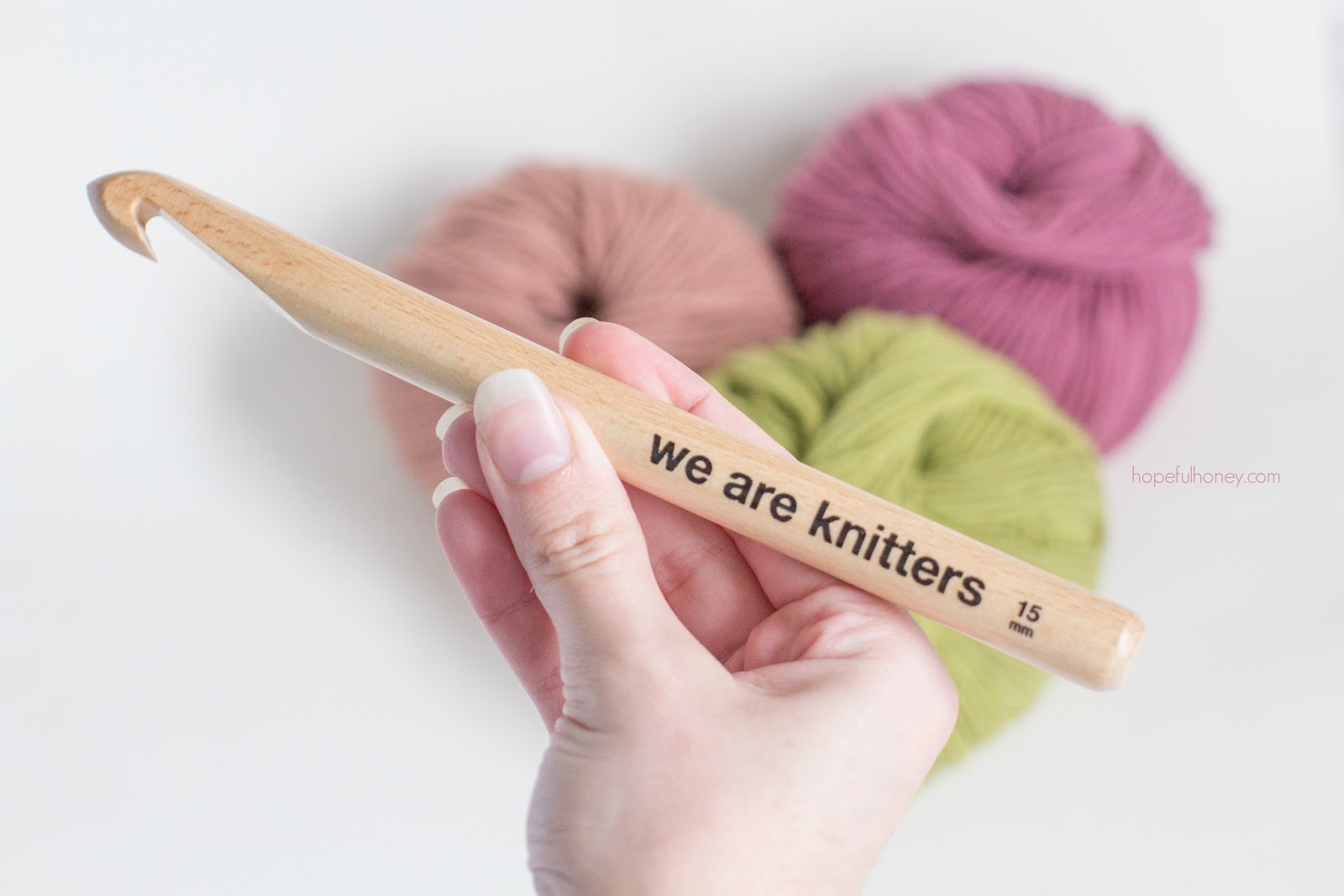 - “We Are Knitters 15mm (P/19) Beechwood Crochet Hook” – Two months ago I worked with the amazing people at We Are Knitters to host a giveaway. During the process they gifted me the loveliest chunky crochet hook I had ever crocheted with! I’ve often found when working with larger hooks in the past, that it feels rather bulky and unnatural to work with… However, the same cannot be said about this lovely hook! Somehow, it became a creative extension of my hand, and I loved the fact that it was varnished so any wool just glided smoothly over the hook while I worked away.